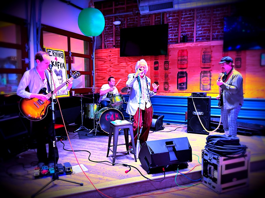 We shoot from the hip. Tunes that come out punching (Robin Finck of Nine Inch Nails). Like Unchain Verite (Unchain the Truth) and I Want Magnificence. Then there’s the political stuff–we’re not exactly middle of the road. Songs like Tyrants & Tyranny. Twisted Rules that I Deplore. Not Sure if I Made it Clear. You can hear all our music on Spotify. And while you’re at it, grab a copy Erica Blair’s book, The Sanctity of Rhyme: The Metaphysics of Crying 4 Kafka. It’s available on Amazon. And though we’re a Santa Barbara based band, we’ve played up and down the West Coast, from LA to Vancouver, including several times in Vegas. The usual refrain after hearing us live–said with appreciation is–who the fuck are you guys? Why haven’t we heard of you before? Lastly, our producer/sound engineer is Paul du Gre. He’s recorded or produced Bad Religion, Leonard Cohen, Tracy Chapman, Los Lobos, Weezer, I See Hawks in LA, Circle Jerks, Canned Heat, the Vitamin String Quartet, and many more.